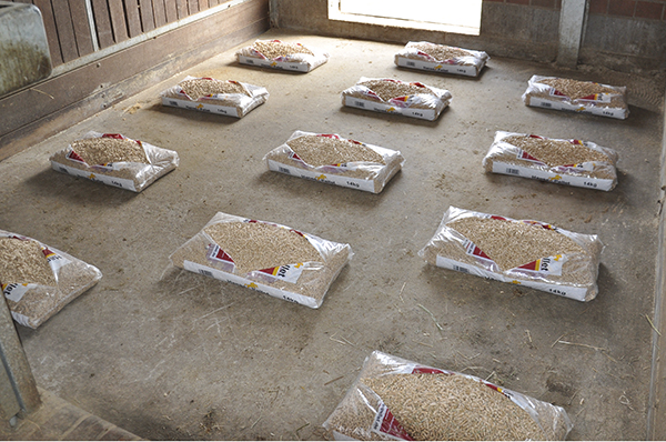 Zur Pflege des Boxenbettes brauchen Sie in den Folgewochen nur die Pferdeäpfel abforken und nasse Stellen zu entnehmen. Je nach Bedarf streuen Sie nach. Pro Woche reichen etwa 1-2 Säcke zum Nachstreuen aus.